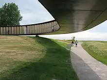The monument was chosen in a public contest and was set to be built on April 13, 2011. It was designed by French designer, Philippe Prost.[7][8] The monument was inaugurated in an Armistice Day celebration on November 11, 2014 by French president, François Hollande. The Nord-Pas-de-Calais région président, Daniel Percheron and the German Minister of Defense, Ursula von der Leyen, were also in attendance of the inauguration ceremony.[9] Neither the German Chancellor nor the British Prime Minister were in attendance.