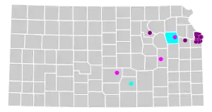 Other cities, including the capital city of Topeka, Emporia and Hutchinson prohibit discrimination against city employees on account of their sexual orientation and gender identity. Likewise, the county of Shawnee,[29] and the city of Wichita prohibit discrimination against city/county employees but on the basis of sexual orientation only.[30]