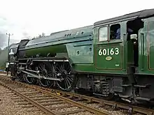 Tornado is numbered 60163, as the 50th Peppercorn A1.[4][5][6] Tornado's smokebox door also carries the identification plate "51 A", the code for Darlington shed. The cab side carries the builder's plate "No. 2195 Darlington 2008". The front buffer beam carries the designation "A1", applied in the paint detailing phase for launch in apple green.[11]
