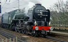 It was then moved to the North Yorkshire Moors Railway for running in. The locomotive obtained its main line certificate in 1992 and subsequently worked many rail tours over the Settle and Carlisle Railway and as far north as its old depot of Aberdeen.[1]