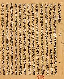 According to Asanga Tillekharatna, "it is generally believed that the sutra was compiled during 350-400 CE," although "many who have studied the sutra are of opinion that the introductory chapter and the last two chapters were added to the book at a later period."[7] But Christian Lindtner shows that some early recension of Lankavatara sutra was known to and influenced the writings of Nagarjuna and Aryadeva basing his conclusion on several close or literal allusions to the sutra in early madhyamaka texts.[8][9] Four translations of the Laṅkāvatāra Sūtra were made from Sanskrit into the Chinese language between roughly 420 CE and 704, the earliest being attributed to Dharmarakṣa in the 5th Century.[10](p5) Of these, only three are now extant.