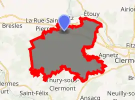 The commune is located 60 km north of Paris, less than 18 km east of Beauvais, 36 km west of Compiegne and 54 km south of Amiens.