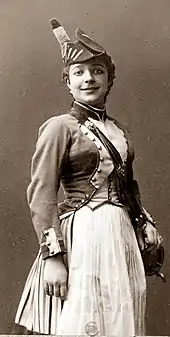 In April 1880 productions opened at the Theater an der Wien in Vienna and the Alhambra Theatre, London.[14] The latter, in an English version by H. B. Farnie, starred Constance Loseby and Fred Leslie, with the role of Griolet played en travesti by Fannie Leslie.[15] The production ran there until January 1881, when it transferred to the Connaught Theatre, with a different cast.[16] The work was given in French at the Shaftesbury Theatre, London, in 1908.[17]