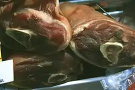 Lacón is a Spanish dried ham obtained from the shoulders or front legs of the pig.