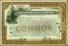 The Lackawanna Steel Company was an American steel manufacturing company that existed as an independent company from 1840 to 1922, and as a subsidiary of the Bethlehem Steel company from 1922 to 1983. Founded by the Scranton family, it was once the second-largest steel company in the world (and the largest company outside the U.S. Steel trust).[1] Scranton, Pennsylvania developed around the company's original location.[2] When the company moved to a suburb of Buffalo, New York, in 1902, it stimulated the founding of the city of Lackawanna.[3]