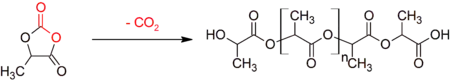 Lactic acid O-carboxyanhydride (lac-OCA) is an organic compound. It is used as a monomer equivalent to lactic acid or lactide in the preparation of poly(lactic acid). When this monomer undergoes ring-opening polymerization, one equivalent of carbon dioxide gas is released for every lactic acid unit incorporated into the polymer:[1]
