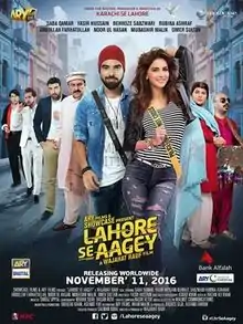 Lahore Se Aagey (Urdu: لاہور سے آگے; transl. Next to Lahore) is a 2016 Pakistani road-comedy romantic film directed by Wajahat Rauf, written by Yasir Hussain and Produced by Wajahat Rauf, Asfand Faruok, Salman Iqbal, and Jarjees Seja. The film is a spin-off to 2015 comedy film Karachi Se Lahore and second installment in Karachi Lahore film series. It features an all star cast, including Hussain (who was also part of the original film) along with Saba Qamar, Behroze Sabzwari, Abdullah Farhatullah, Mubashir Malik, Atiqa Odho, Rubina Ashraf and Noor ul Hasan. The film was released worldwide on 11 November 2016 under the production banner of AN Entertainment Pvt. Ltd .[3][4] Upon release, it received criticism from critics and became a moderate box office success.[5]