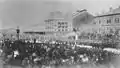 On 23 October, Kossuth landed at Southampton and spent three weeks in England, where he was generally feted. After his arrival, the press characterized the atmosphere of the streets of London as this: "It had seemed like a coronation day of Kings".[40][41] Contemporary reports noticed: "Trafalgar Square was 'black with people' and Nelson's Monument peopled 'up to the fluted shaft.'"[42]