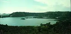 Lake Avernus (Italian: Lago d'Averno) is a volcanic crater lake located in the Avernus crater in the Campania region of southern Italy, around 4 km (2.5 mi) west of Pozzuoli. It is near the volcanic field known as the Phlegraean Fields (Campi Flegrei) and comprises part of the wider Campanian volcanic arc. The lake is roughly circular, measuring 2 km (1.2 mi) in circumference and 60 m (213 ft) deep.