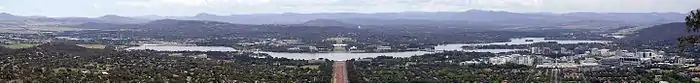 ![]() Lake Burley Griffin viewed from Black Mountain Tower | |
