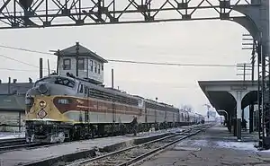 A few years before the Erie's 1960 merger with the Delaware, Lackawanna and Western Railroad, the Lake Cities began running into the Hoboken Terminal in Hoboken, New Jersey. Upon the merger, it was routed over the Lackwanna's Poconos main line route in northern New Jersey and northeastern Pennsylvania.[2][3] Between 1961 and 1962, the train was known as the "Chicago Lake Cities/Buffalo Lake Cities", but reverted to Lake Cities. Sleeper service ended on October 28, 1962. From April 26 until October 25, 1964, the Lake Cities was renamed The World's Fair in connection with the 1964 World's Fair in New York. On November 28, 1966, the Lake Cities regained diner and sleeper service to compensate for the withdrawal of the Phoebe Snow (which had its final run the previous day), but by 1967 the sleeping service went no further west than Marion, Ohio, while the dining car stopped at Huntington, Indiana.