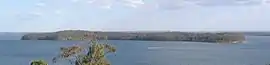 There is no point on the coast from which the entire expanse of the lake and its 174 km (108 mi) foreshore may be seen. However, a good view can be obtained from lookouts in the nearby Watagan Mountains.