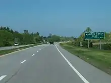 Now in the town of Hamlin, the parkway heads southeastward along the southern edge of Hamlin Beach State Park. Roughly midway through the park, it connects to the park itself by way of a large, modified trumpet interchange that also connects Moscow Road—an east–west connector between Redman Road[7] (former NY 215[9]) and NY 19—to the parkway and Hamlin Beach State Park. East of the park, the parkway comes close to the lake shore once again; however, most of the route in Hamlin is separated from the lake by a series of linear, lakeside hamlets. Roughly 2.5 miles (4.0 km) east of Hamlin Beach, the highway loses its limited-access status as it meets NY 19 at a four-way intersection, the first of eight at-grade intersections along the highway in Hamlin and Parma.[7]