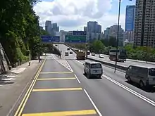In 1989 Eastern Harbour Crossing was completed.[13] Kwun Tong Bypass was completed in 1991.[14] To construct an interchange for both roads, the intersection between Lei Yue Mun Road and Kai Tin Road was rebuilt into a flyover-roundabout. This made Lam Tin a bridge between the Eastern Harbour Crossing and the Kwun Tong Bypass of Route 2, with Lei Yue Mun Interchange as the exit point.