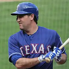 On January 5, 2013, Berkman agreed to a one-year contract with the Texas Rangers for approximately $10 million.[32] In 73 games, Berkman hit .242 with six home runs and 34 RBIs in 256 at bats. On October 31, the Rangers declined his option, which made him a free agent.[33] On January 29, 2014, he decided to retire.[34] Berkman, along with former teammate Roy Oswalt signed a one-day contract with Houston to officially retire as a member of the Astros on April 5, 2014.[35]