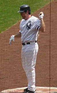 On July 31, 2010, Berkman was traded to the New York Yankees for minor leaguers Jimmy Paredes and Mark Melancon.[27][28] He served as both a designated hitter and back-up first baseman during his tenure with New York. During the 2010 ALCS, Berkman served first base for the rest of the post-season when Mark Teixeira went on the disabled list due to a hamstring injury. The Yankees eventually lost the ALCS to the Texas Rangers in 6 games.