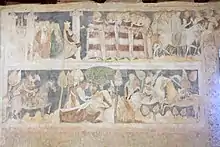 ![]() Scenes from the Lancelot Proper depicted in a Polish 14th-century fresco at Siedlęcin Tower | |