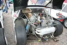 Unlike its predecessor, the V6-powered Lancia Stratos HF, the first 037s had a 2.0-litre 4-cylinder supercharged engine. Based on the long stroke twin cam engine which powered earlier Fiat Abarth 131 rally cars, the four valve head was carried over from the 131 Abarth but the original two carburetors were replaced by a single large Weber carburetor in early models and later with fuel injection. The 037 features a ZF transaxle.[1]