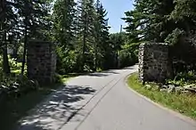 The Land's End colony was founded in 1907 by Russell W. Porter, an artist, amateur astronomer, and Arctic explorer. After participating in a series of Arctic exploratory expeditions, Porter sought a retreat where he engage pursuits in astronomy and art, and chose the area south of the fishing village of Port Clyde. He spent $950 to purchase the entire peninsula, platted it out for development, and built a number of the cottages. He specifically sought to harmonize the buildings with the surrounding environment, including natural features such as pergolas finished in tree bark, and unfinished wooden interiors. Porter's own house, a stone structure in the English Revival style, includes a rounded section in which he intended to mount a telescope. Porter's experiment came to an end in 1919, when he left for California to assist in the construction of the Mount Palomar Observatory.[3]