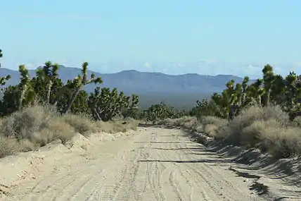 Lanfair Valley is located in the Mojave Desert in southeastern California near the Nevada state line. It is bounded on the north by the New York Mountains and Castle Mountains, on the east by the Piute Range, and on the south by the Woods Mountains and Vontrigger Hills. Joshua Trees can be found in most of the valley. Elevation is 4,045 feet.