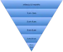 - Children aged 2–3 communicate best in a turn-taking style. This creates a conversational structure that makes it easier for verbal communication to develop. It also teaches patience, kindness, and respect as they learn from the direction of elders that one person should speak at a time. This creates interactional synchrony during their preverbal routines that shapes their interpersonal communication skills early on in their development.[22] Children during this stage in their life also go through a recognition and continuity phase. Children start to see that shared awareness is a factor in communication along with their development of symbolic direction of language. This especially affects the relationship between the child and the caregiver; it is a crucial part of self-discovery for the child when they begin to take ownership over their own actions in a continuous manner.[22]