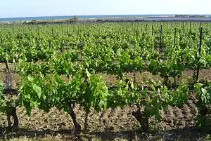A vineyard in Villeneuve-lès-Maguelone bordering the Gulf of Lion.