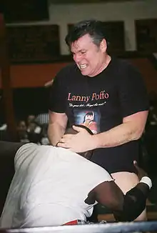 Lanny Mark Poffo (born December 28, 1954), better known by his ring names "Leaping" Lanny Poffo and The Genius, is a Canadian-American professional wrestler, motivational speaker, poet, and actor. Poffo was born in Calgary, Alberta, Canada, to Angelo Poffo, an Italian American Catholic, and Judy, a Jewish-American.[3] He is also the real-life younger brother of "Macho Man" Randy Savage. Poffo grew up in Downers Grove, Illinois, and currently resides in Ecuador.