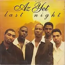 "Last Night" is an R&B song recorded by the group Az Yet and produced by Babyface and Mervyn Warren. The song became the group's first hit, reaching number nine on the Billboard Hot 100, number one on the Hot R&B Singles chart, number four on the Rhythmic Top 40 chart, in addition to reaching number two in Australia and number one in New Zealand for two weeks.