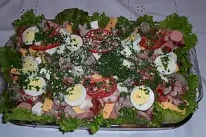 Mexican cuisine is a style of food which is primarily a fusion of indigenous Mesoamerican cooking with European (especially Spanish) cooking developed after the Spanish conquest of the Aztec Empire. The basic staples remain the native corn, beans and chili peppers but the Europeans introduced a large number of other foods, the most important of which were meat from domesticated animals (beef, pork, chicken, goat and sheep), dairy products (especially cheese) and various herbs and spices.[6] While the Spanish initially tried to superimpose their diet on the country, this was not possible thanks largely to Mexico's highly developed indigenous cuisines. Instead, the foods and cooking techniques of both the indigenous Mexicans and the Spanish began to be mixed contributing to the development of an even more varied and rich cuisine. Over the centuries, this resulted in various regional cuisines, based on local conditions such as those in the north, Oaxaca, Veracruz and the Yucatán Peninsula. Mexican cuisine is highly tied to the culture, social structure and its popular traditions, the most important example of which is the use of mole for special occasions and holidays, particularly in the South region of the country. For this reason and others, Mexican cuisine was added by UNESCO to its list of the world's "intangible cultural heritage".[7]
