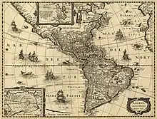 There was no integrated economy in Latin America prior to European contact, when the region was then incorporated into the Spanish empire and the Portuguese empire. The peoples of the Western Hemisphere (so-called "Indians") had various levels of socioeconomic complexity, the most complex and extensive at the time of European contact were the Aztec Empire in central Mexico and the Inca empire in the Andean region, which arose without contact with the Eastern Hemisphere prior to the late fifteenth-century European voyages. The north-south axis of Latin America, with little east-west continental area, meant that movement of people, animals, and plants was more challenging than in Eurasia, where similar climates occur along the same latitudes. This prompted the rise of more isolated economic and political systems in pre-Contact Latin America.[12] Much of what is known about pre-Contact Latin American economies is found in European accounts at Contact and in the archeological record.[13] The size of indigenous populations, organizational complexity, geographical locations, especially the existence of exploitable resources in their vicinity had a major impact on where Iberians at Contact chose to settle or avoid in the late fifteenth and early sixteenth centuries. "The Indian peoples and the resources of their lands were the primary determinants of regional differentiation."[14]