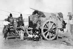 Wheat production for export was stimulated in Chile during the California gold rush of the mid-nineteenth century, but ended when transportation infrastructure in the U.S. was built. In Argentina, wheat became a major export product to Britain, since transport costs had dropped enough to make such a bulk product profitable.[88] Wheat grown on the rich virgin soil of the pampas was mechanized on large enterprises during the boom.[89]