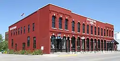 The Latsch Building's history is not entirely known.[4] Its official National Register documentation gives a construction date of circa 1868, but more recent sources give a start date of 1860 and note that it was altered and expanded over the next few decades. During an extensive renovation in 2015, the owner posited that the visible structure had been constructed around an older building in 1890.[5] Whatever the timeframe, the brick building's façade was designed in the Italianate style that was then coming into vogue, but retained overtones of the older Gothic Revival design, particularly in regard to the windows. Cast-iron Corinthian columns were added to the front façade in the 1880s.[4]