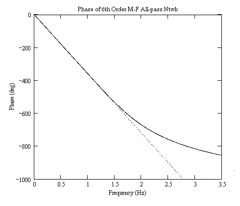 From this the phase plot for this sixth-order all-pass function can be calculated and is given below.