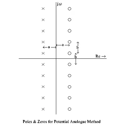 The potential analogue method was proposed by Darlington[12] as a simple way to choose pole-zero positions for delay networks. The method allows the designer to implement a delay characteristic by locating poles and zero on the complex frequency plane intuitively, without the need for complicated mathematics or the recourse to reference tables.