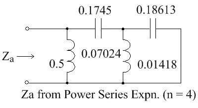 so for the fourth order network containing the impedance za, derived by the power series expansions, is