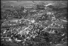 The municipality is the capital of the Laufen district. It consists of the old city of Laufen, within the city walls, the settlement outside the walls by the waterfall and since the 20th Century, settlements on both sides of the Birs river. The old city and the settlement outside the walls merged in 1852.[5]