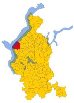 Laveno-Mombello is a comune (municipality) in the Province of Varese in the Italian region Lombardy, located about 75 kilometres (47 mi) northwest of Milan and about 25 kilometres (16 mi) northwest of Varese. As of 31 December 2004, it had a population of 8,991 and an area of 25.9 square kilometres (10.0 sq mi).[3] It sits at the foot of Sasso del Ferro.