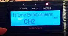 A Law Enforcement Warning being displayed on a RadioShack 12-519 weather radio receiver. (Source: Youtube user BlackBird7790)