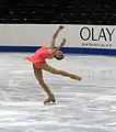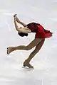 A layback spin is an upright figure skating spin in which the head and shoulders are dropped backwards and the back arched downwards toward the ice.[1] A common variation has the free leg lifted toward the back, typically in an attitude position, with the arms held above the body, or with a catchfoot position (haircutter spin). A common, though very difficult, variation is the Biellmann spin.