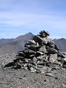 The Grand Argentier is the main summit of a ridge dividing the valley of the Ruisseau du Frejus (NE) from the valley of the Torrent de Fontane Froide, both tributaries of the Ruisseau du Charmaix, which ends in the Arc downstream of Modane. Towards SE the mountain is connected with the neighbouring Punta Nera by a saddle at 2,996 m of elevation.,[1] while the water divide Fréjus/Fontaine Froide continues with the Col du Petit Argentier (2,599 m) and the Petit Argentier. The southern slopes of the Grand Argentier are mainly detrital, while its western face, flanking Fontaine Froide valley, is remarkable for a large dolomite escarpment.[3] Its summit is marked by a cairn.