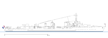 The fast battleships Dunkerque and Strasbourg, then under design in 1931, would be able to sustain a speed of 30 knots (56 km/h; 35 mph), equal to the sustained speed achieved by the L'Adroit-class destroyers, although the Marine Nationale believed that a margin of 3–4 knots (5.6–7.4 km/h; 3.5–4.6 mph) was necessary when escorting the battlefleet. It thus formulated a requirement for a destroyer capable of 38 knots (70 km/h; 44 mph). A preliminary design, displacing about 1,400 tonnes (1,400 long tons) and armed with two twin-gun 130-millimetre (5.1 in) turrets, was developed the following year, but was too small to accommodate the propulsion machinery necessary to achieve the intended speed. As the detailed design was prepared over the next two years, the Le Hardis were enlarged and given extra guns to counter the large destroyers of the Italian Navigatori and Japanese Fubuki classes. Now significantly larger and faster than the L'Adroits, the Le Hardi-class design was approved on 10 August 1934.[1]