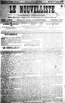 ![]() First issue of Le Nouvelliste, 1 August 1899. | |