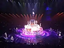 Le Rêve ("The Dream") was a stage production in residence at the Wynn Las Vegas casino resort. It was the only Las Vegas show set in an aquatic theater-in-the-round stage (>1 million US gallon (water capacity). The show featured diving and feats of strength with special effects, including fire effects. No seat is more than 40 feet (12 m) from the stage. The production was originally created by Franco Dragone but has been substantially revised over time. The show featured more than 90 performers and 250 cast and crew members.[1]