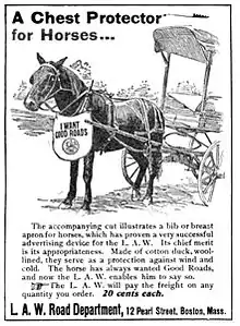 The League was a prominent advocacy group for the improvement of roads and highways in the United States[12] long before the advent of the automobile. The Good Roads Movement in the late 19th century was founded and led by the League, which began publishing Good Roads magazine in 1892.