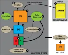 The name, "Learning Classifier System (LCS)", is a bit misleading since there are many machine learning algorithms that 'learn to classify' (e.g. decision trees, artificial neural networks), but are not LCSs. The term 'rule-based machine learning (RBML)' is useful, as it more clearly captures the essential 'rule-based' component of these systems, but it also generalizes to methods that are not considered to be LCSs (e.g. association rule learning, or artificial immune systems). More general terms such as, 'genetics-based machine learning', and even 'genetic algorithm'[39] have also been applied to refer to what would be more characteristically defined as a learning classifier system. Due to their similarity to genetic algorithms, Pittsburgh-style learning classifier systems are sometimes generically referred to as 'genetic algorithms'. Beyond this, some LCS algorithms, or closely related methods, have been referred to as 'cognitive systems',[16] 'adaptive agents', 'production systems', or generically as a 'classifier system'.[55][56] This variation in terminology contributes to some confusion in the field.