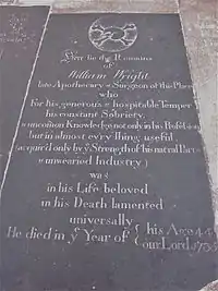 Ledger stones were favoured by the English middle classes as they were cheaper than a more elaborate monument.[1] They were frequently laid down by the family of the lord of the manor or holder of the advowson of the parish in question, and such family often had its own private chapel within the parish church, often at the east end of the north aisle, where the manorial pew was situated and where members of the family were buried.