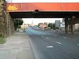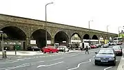 Wakefield Road, Bradford, looking south up the A650 road. This bridge used to carry the Bowling to Laisterdyke line.