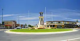 Leeton is a town located in the Riverina region of southern New South Wales, Australia. Situated approximately 550 km west of Sydney and 450 km north of Melbourne in the Murrumbidgee Irrigation Area,[2] it is the administrative centre of the Leeton Shire Council local government area. Leeton's urban population in 2016 was 6,931.[1] Situated in one of the most productive farming regions in the state, the town was designed by Walter Burley Griffin and purpose-built for the irrigation schemes announced by the New South Wales government in the early 1900s.[2][3][4] Citrus, rice, cotton, grapes, walnuts and wheat farms can all be found throughout the Leeton Shire. Leeton is renowned as Australia's Rice Capital and as The Heart of SunRice Country, as it is home to the SunRice headquarters.[5][6] Other industry includes Freedom Foods, the Daily Drinks Co., JBS Australia, Webster Limited (walnuts and cotton)[7] and Murrumbidgee Irrigation Limited.[8]