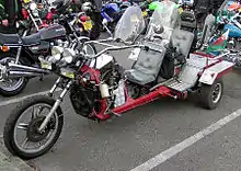 Three-wheeled vehicles weighing less than 8 cwt (896 lb / 406 kg) were long classified as motorcycles in the UK and could be driven with a full motorcycle licence. A requirement there be no reverse gear fitted was dropped in the 1960s. This exemption was linked to the enduring popularity of three-wheeled vehicles in the UK (such as the Reliant Regal van) but was abolished for new licence holders in October 2000.[9] Mass-production of three-wheelers ceased in 1998 but the licensing exemption still benefits trikes and their riders.