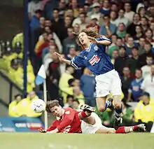 Leicester started their first season in the Premier League since 2004 with a good run of results in their first five league matches, starting with a 2–2 draw on the opening day against Everton.[42] The Foxes then claimed their first Premier League win since May 2004, with a 0–1 win at Stoke City.[43] On 21 September 2014, Leicester went on to produce one of the greatest comebacks in Premier League history to beat Manchester United 5–3 at the King Power Stadium after coming back from 3–1 down with 30 minutes left to score four goals. They also made Premier League history by becoming the first team to beat Manchester United from a two-goal deficit since the league's launch in 1992.[44]